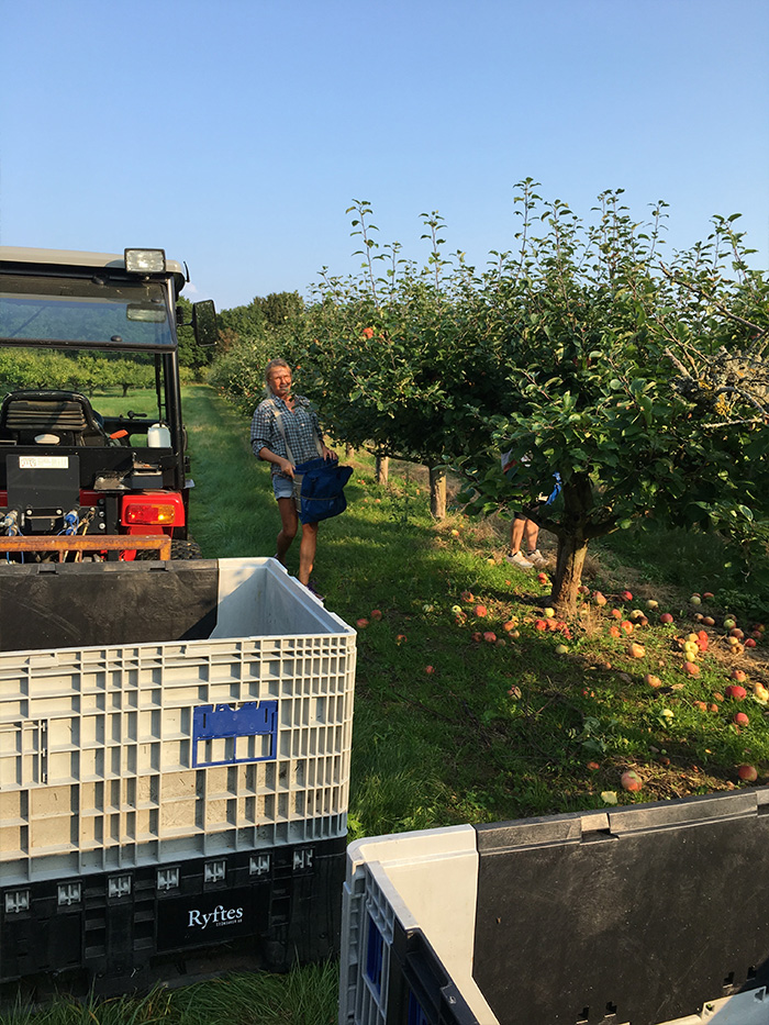 – Det var en varm blomningsperiod, en lite blötare juli och en augustimånad med mycket sol och långa torrperioder. När det var dags att börja skörda i mitten på september såg vi att det blivit ett rekordår. Vi kunde plocka äpplena i kortbyxor och t-shirt, berättar Peter Jedeur-Palmgren.